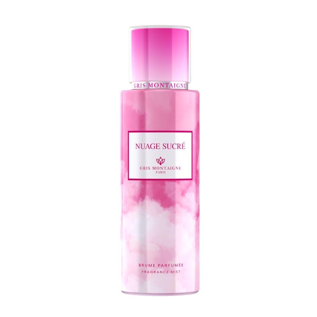 Brume Gris Montaigne Nuage Sucré 250 ml diffuse un voile parfumé délicieusement gourmand, aux accents sucrés et enveloppants. Légère et rafraîchissante, elle laisse la peau subtilement parfumée tout au long de la journée.